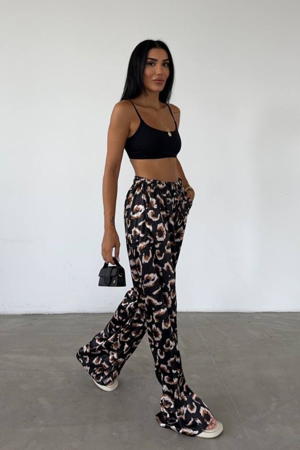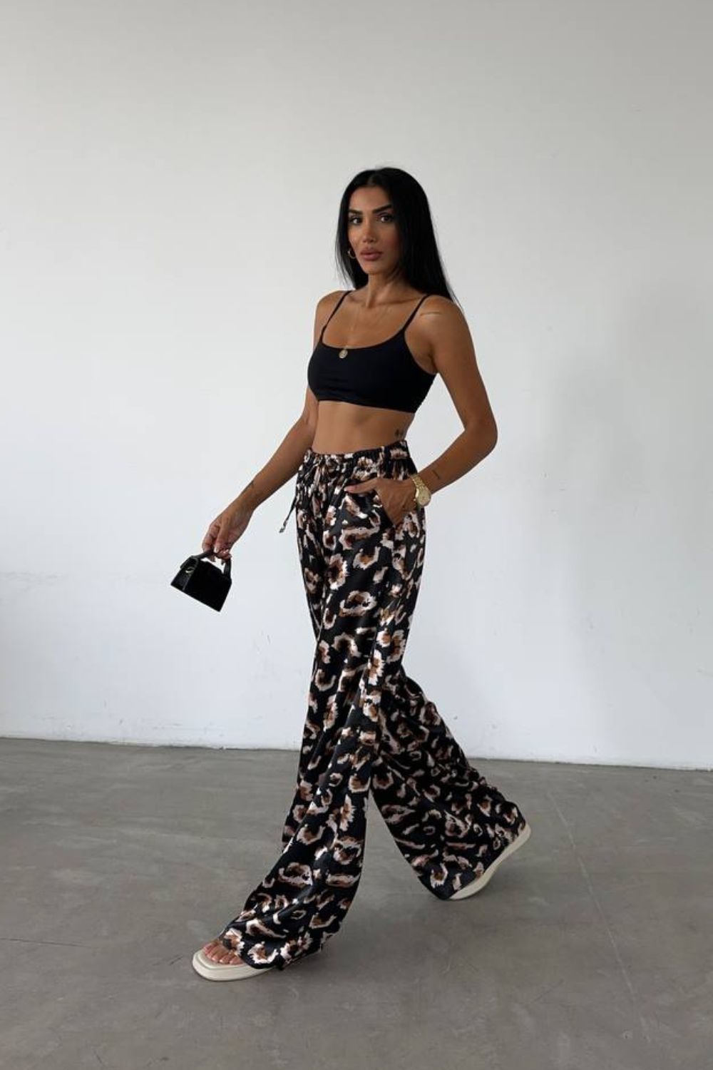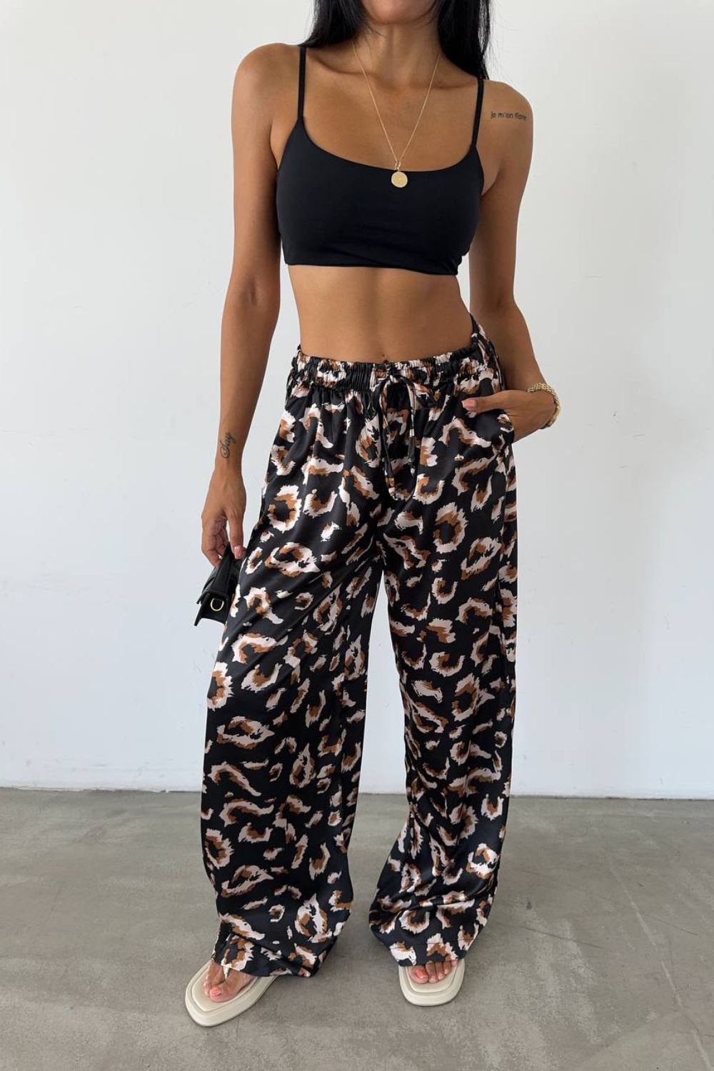 Pantalón ancho de raso animal print