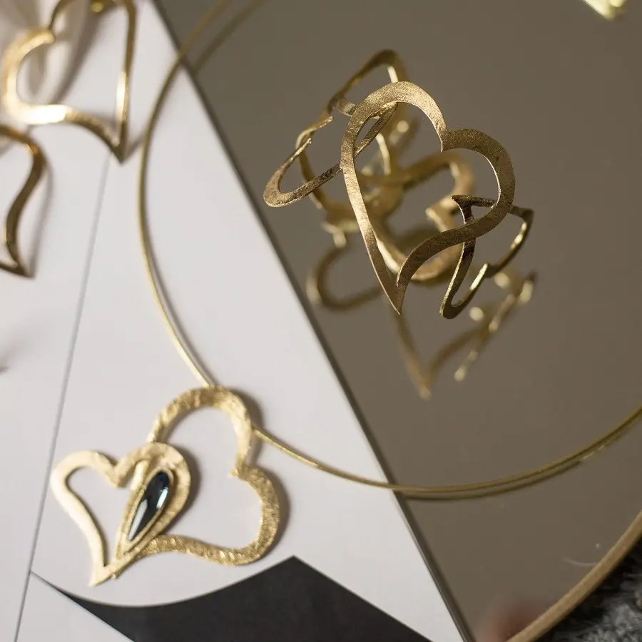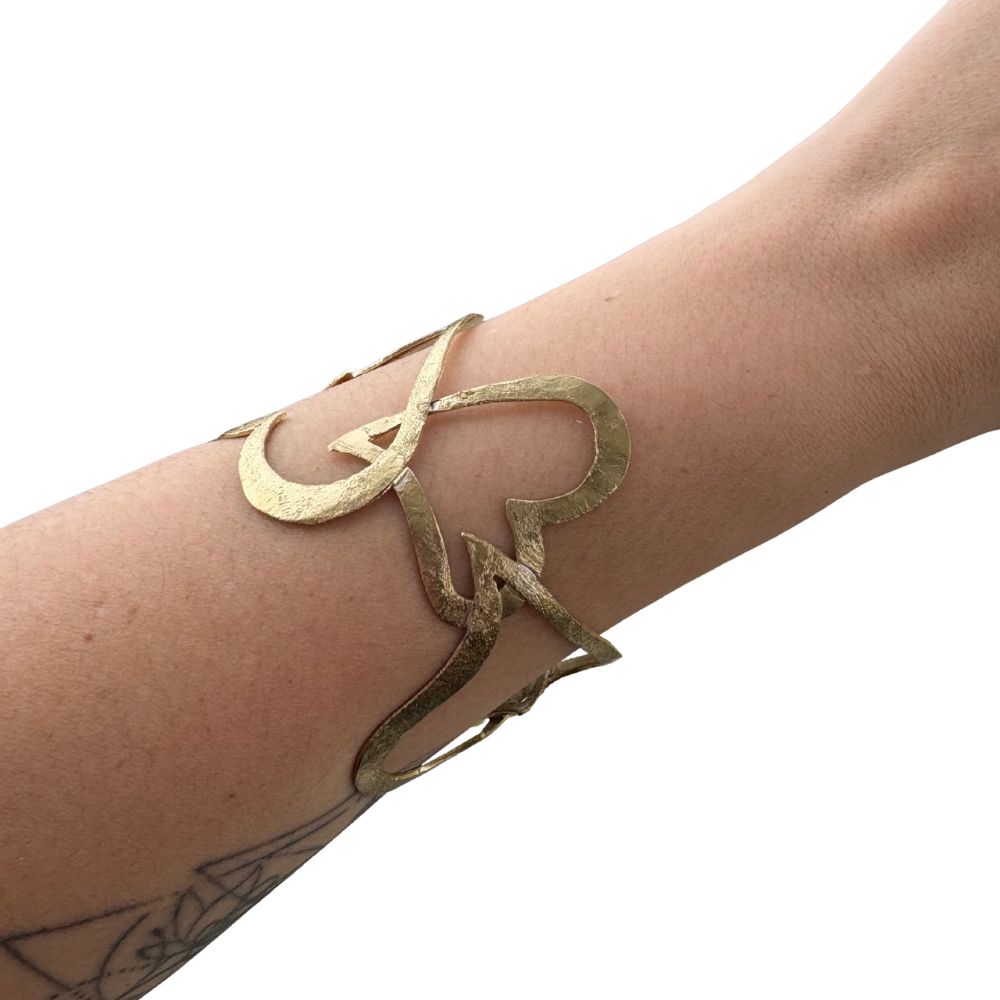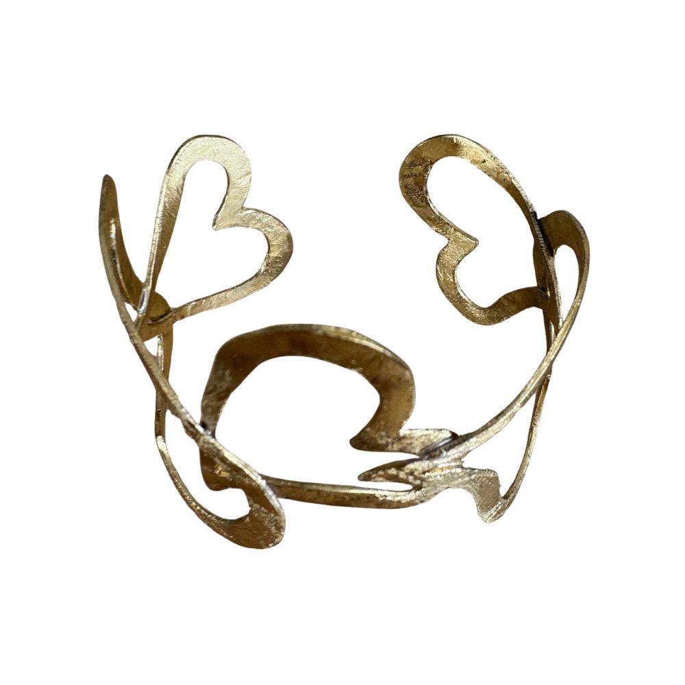 Pulsera en bronce con diseño abierto de corazones entrelazados, ligera y femenina. Su estructura calada la convierten en un accesorio versátil y romántico, perfecto para añadir un toque especial a cualquier look.